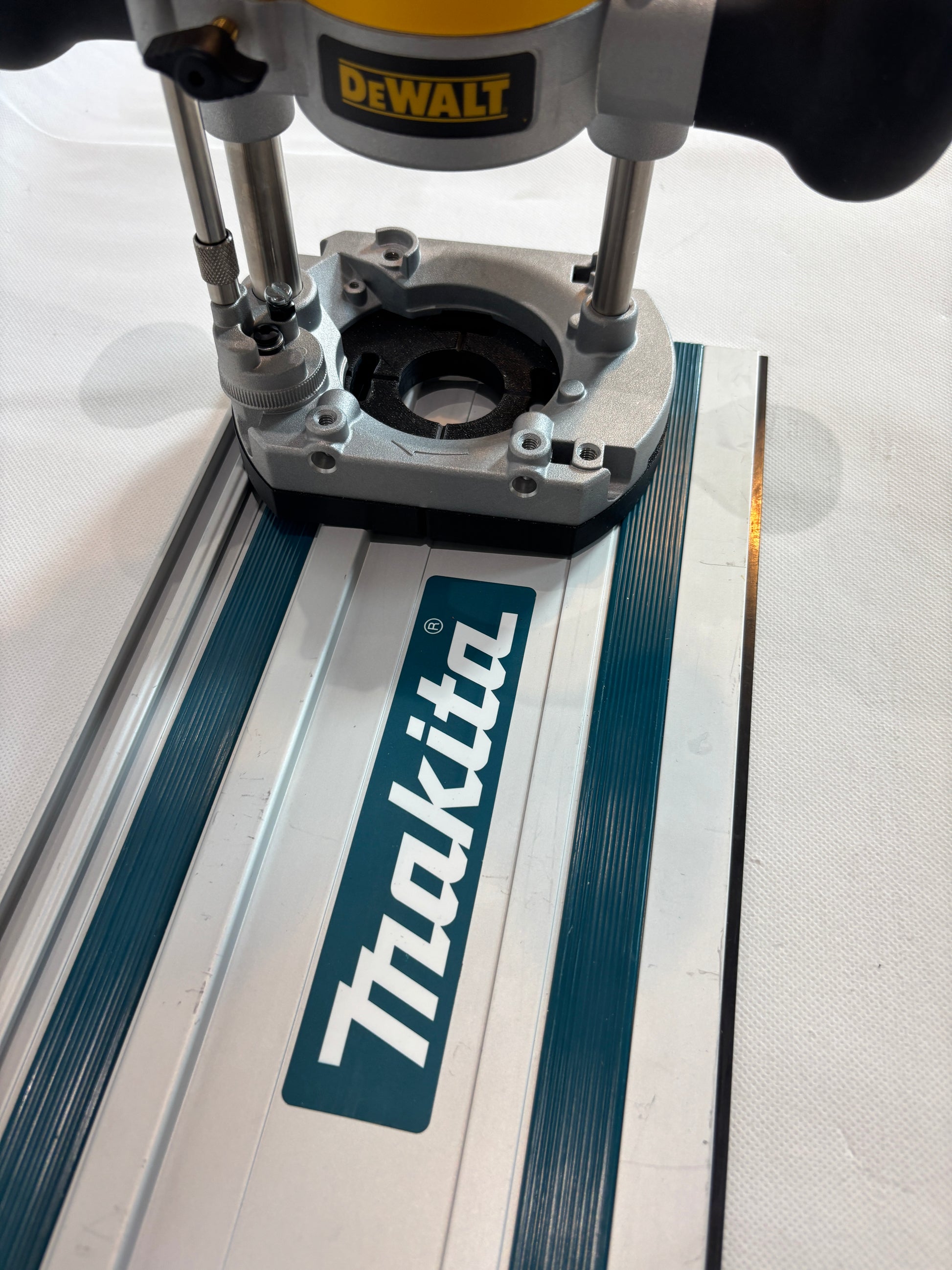 - Adapts Dewalt trimmers (plunge base attachment!) to use on above mentioned plunge saw guide rails